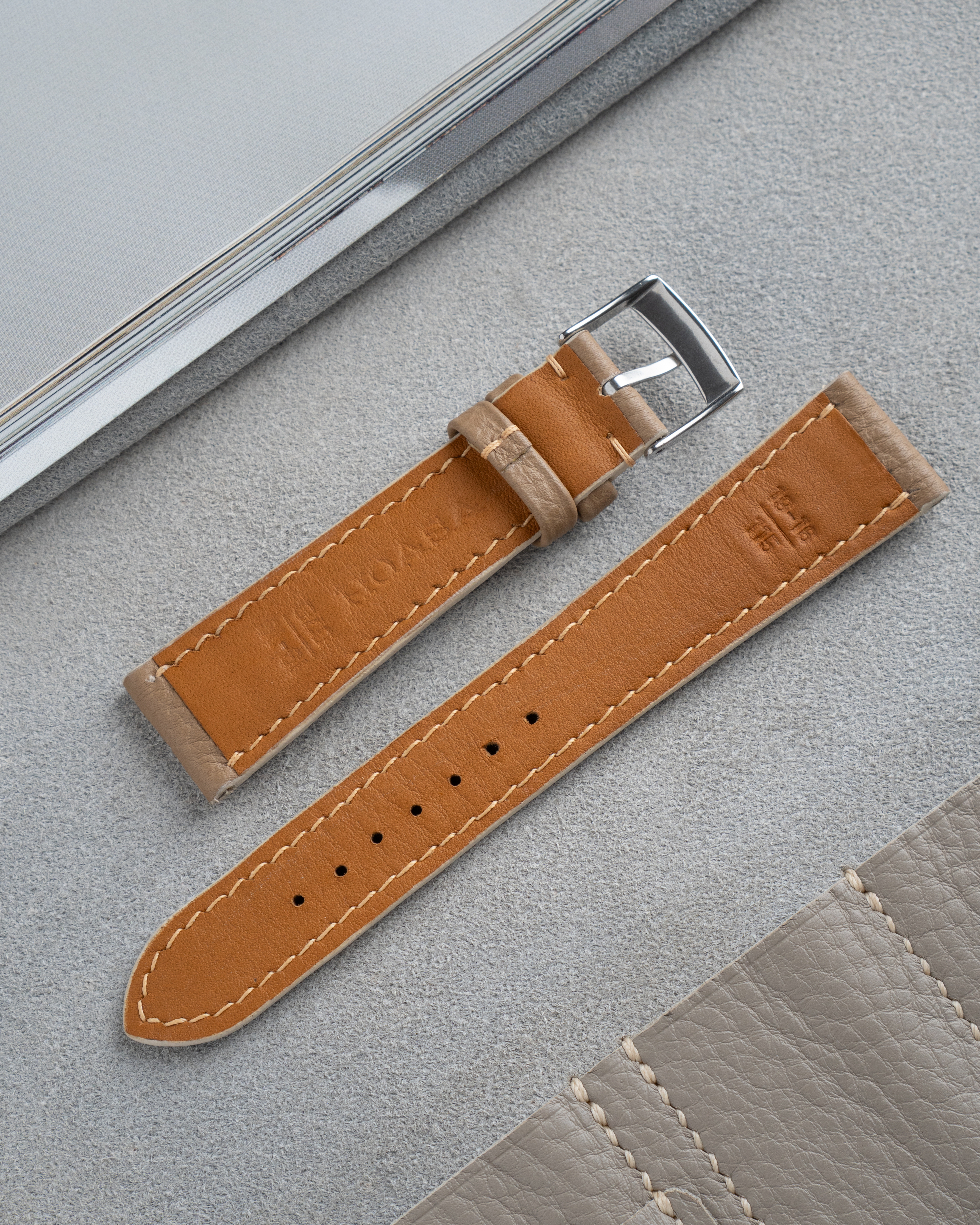 – Hand hem stitching with Meisi stitching: Meisi Linen Thread is one of the most commonly used sewing threads, made from strong natural linen fibers, covered with a thin layer of wax to create a smooth, naturally dyed color. The thread does not fade or deform, making it suitable for high-quality products. At Hoa Sa, the leather straps of the watches are sewn by our leather craftsmen. Unlike machine stitching, hand stitching will be of higher quality in terms of precision and firmness with knots at each stitches.