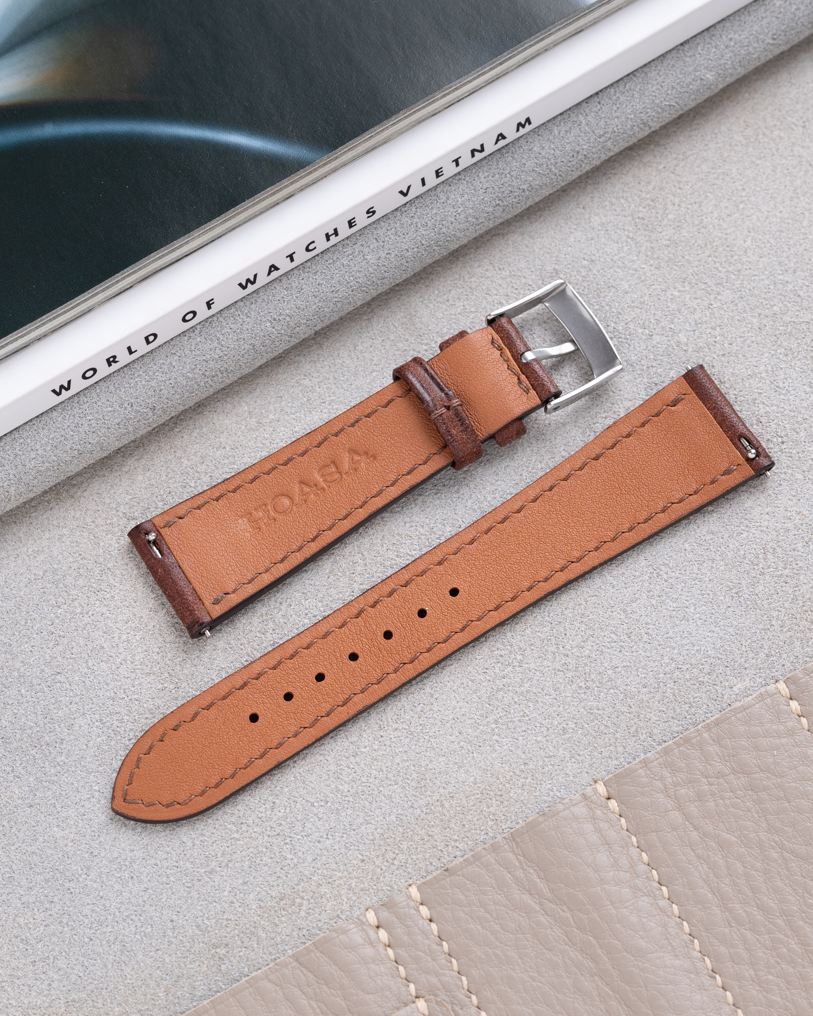 Hoa Sa Product is made with bespoke materials and is expected to last for a long time. Follow simple care rules to ensure the lifetime of the band including using a soft cloth to clean, avoiding cleansing liquid with alcohol or soap inside or leaving product under direct sunlight for a long time, the dry product naturally once it’s got wet, and never do dry wash or machine wash with Hoa Sa leather products. With any failure of stitching or edges painting or others by producer, please contact Hoa Sa at Email hoasa.strap@gmail.com or at Whatsapp+ (+84) 915 555 932 (Ha Loi)